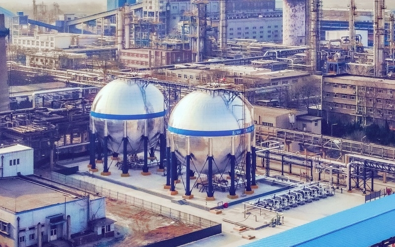 球形儲罐(球罐)在石油煉制工業(yè)和石油化工中主要用于貯存和運(yùn)輸液態(tài)或氣態(tài)物料。操作溫度一般為-50~50℃,操作壓力一般在3mpa以下。球罐與圓筒容器(即一般儲罐)相比,在相同直徑和壓力下,殼壁厚度僅為圓筒容器的一半,鋼材用量省,且占地較小,基礎(chǔ)工程簡單。但球罐的制造、焊接和組裝要求很嚴(yán),檢驗(yàn)工作量大,制造費(fèi)用較高。球罐為大容量、承壓的球形儲存容器,廣泛應(yīng)用于石油、化工、冶金等部門,它可以用來作為液化石油氣、液化天然氣、液氧、液氨、液氮及其他介質(zhì)的儲存容器。也可作為壓縮氣體(空氣、氧氣、氮?dú)?、城市煤氣)的儲罐?/span>